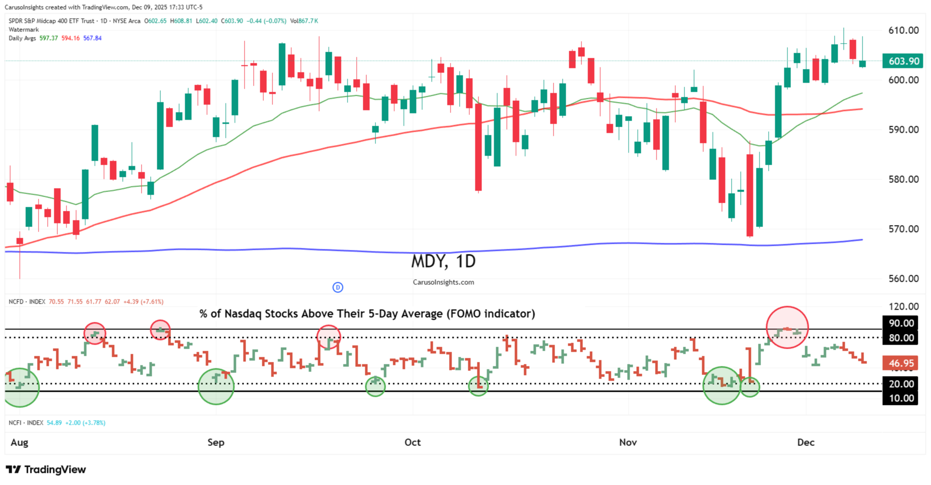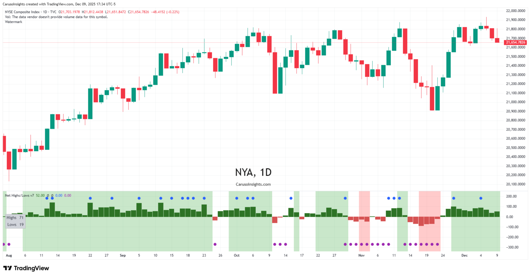 Net highs picked up their pace again as FOMO improved,d but still sits well below the 67% level. This continued improvement and stability have shifted our ideal exposure from 30–70% up to 50–90%. The fact that the AGI Pro strategies remain below that range is a sign we need to pick up our pace as soon as possible.